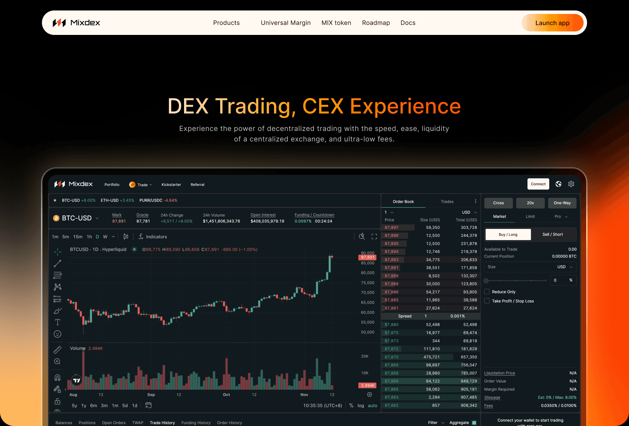 MIXDEX is the new platform for trading spot and perpetuals with ultra-low fees, deep liquidity, and lightning-fast execution. The platform allows users to utilize their entire portfolio as margin, earn yield on deposits, and borrow assets to amplify trades—all with the security of a decentralized exchange.