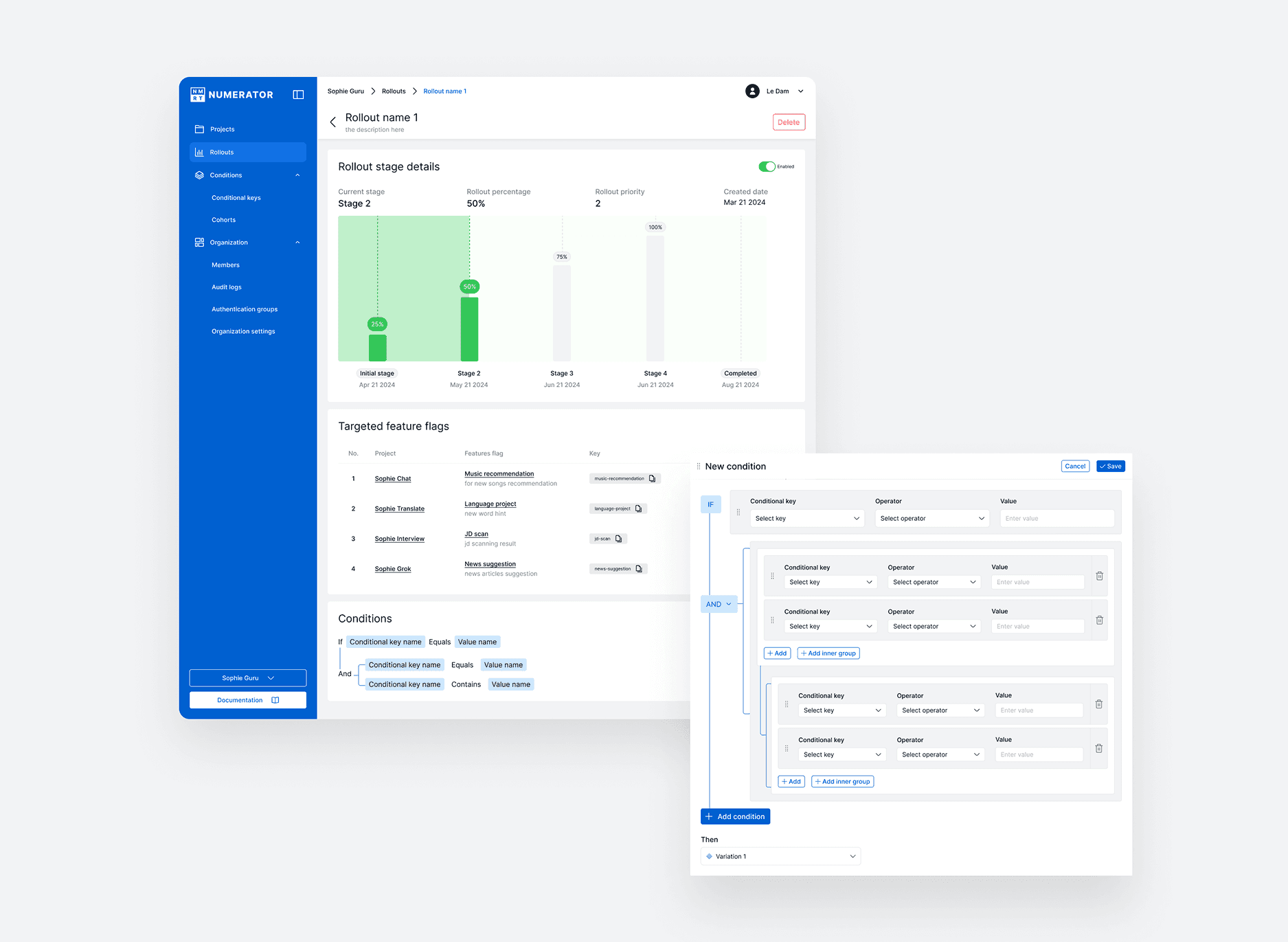 With the powerful capabilities of feature flags, Numerator emerges as a structured solution for effective feature flag management. The project serves as organizational containers, providing a centralized and streamlined approach to managing feature flags across different applications or services. Feature flags empower development teams with flexibility in deploying and managing features. Key concepts include: - Toggleable Features: Easily enable or disable features in real-time. - Gradual Rollouts: Release features progressively to minimize risks. - Targeted Rollouts: Release features to specific contexts, such as user segments, environments, platforms, or demographics, allowing for precise control over feature exposure.